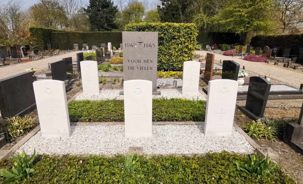 De stoffelijke resten van de vijf Engelsen – Geoffrey Dutton Warburton, James Arthur Grey, Frank Paul Trautman, Noel Evans en Reginald Bromley – liggen op een mooi deel van de begraafplaats bij elkaar, een locatie die voor hen speciaal door het Nederlands Oorlogsgraven Comité is ingericht. Vijf witte stenen en een herdenkingsplaat markeren de plek.